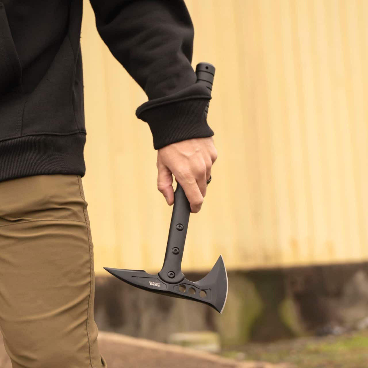 The Apocalypse Edge Axe is a rugged and versatile tool designed for the modern outdoorsman. Crafted from durable 420 stainless steel, this axe boasts exceptional strength with a razor sharp axe head, complimented by a spike on the back of the axe head. Its substantial 15” inch overall length strikes the perfect balance between power and portability. Comes with a nylon sheath.