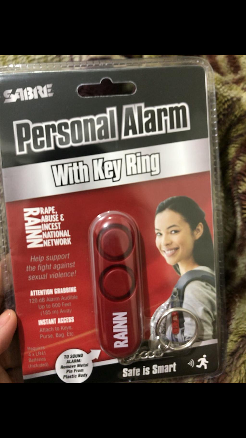 The alarm can be attached to your bag, backpack, purse, and keychain for easy access. Small and lightweight, Sabre Personal Alarm is advisable for commuters and those who go home late, or goes for a run alone. It requires four LR41 Alkaline batteries (included).