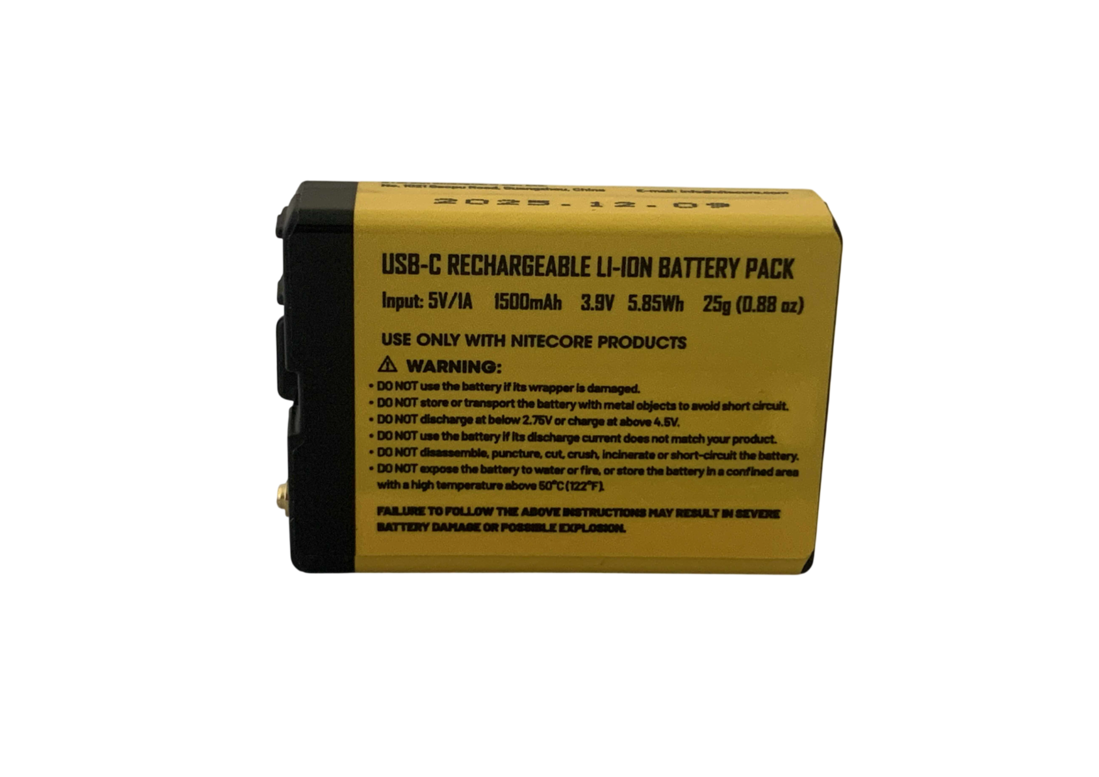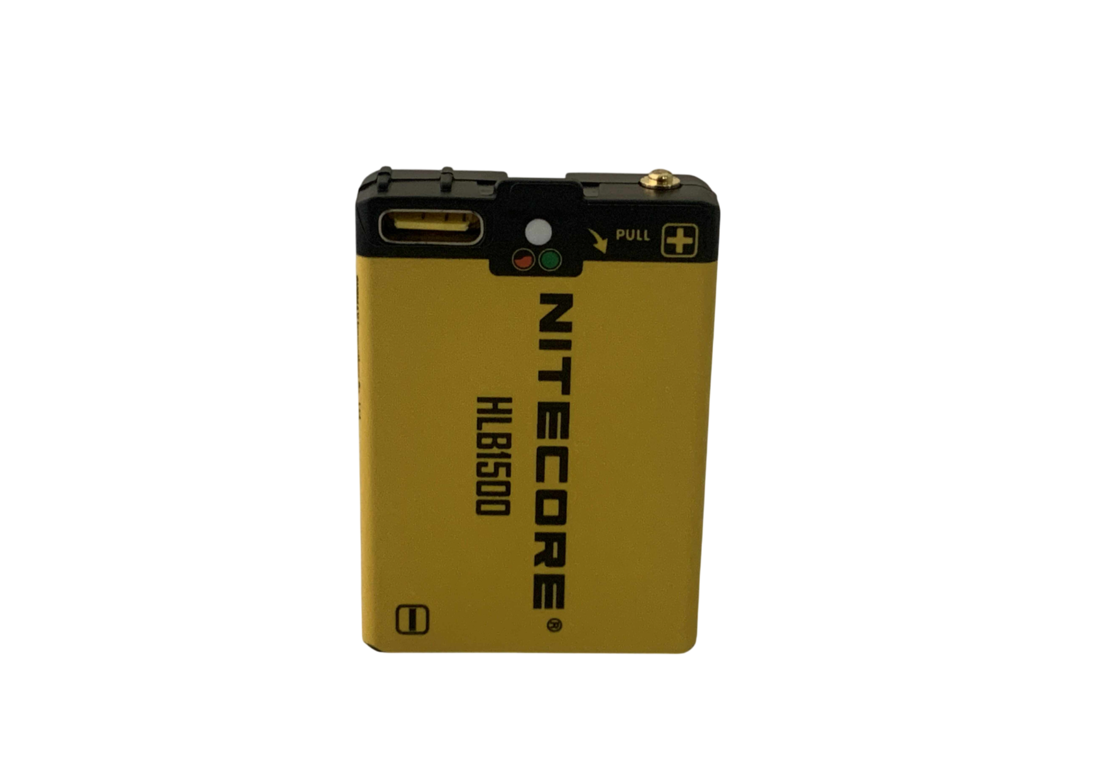 The Nitecore HLB1500 is an upgraded 1500mAh li-ion battery pack specifically designed for the Nitecore UT27 and HA13 headlamps. It is rechargeable via a USB-C charging port with an indicator light that changes from red to green once fully charged, in as little as 1 hour and 50 minutes (charging cable not included).