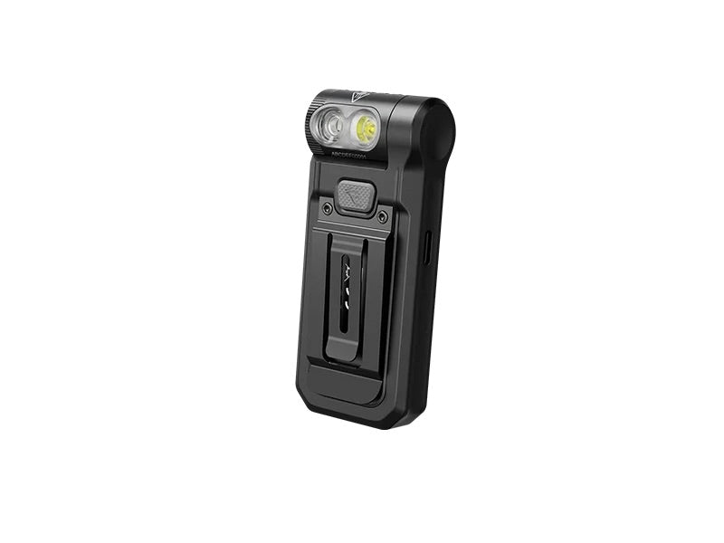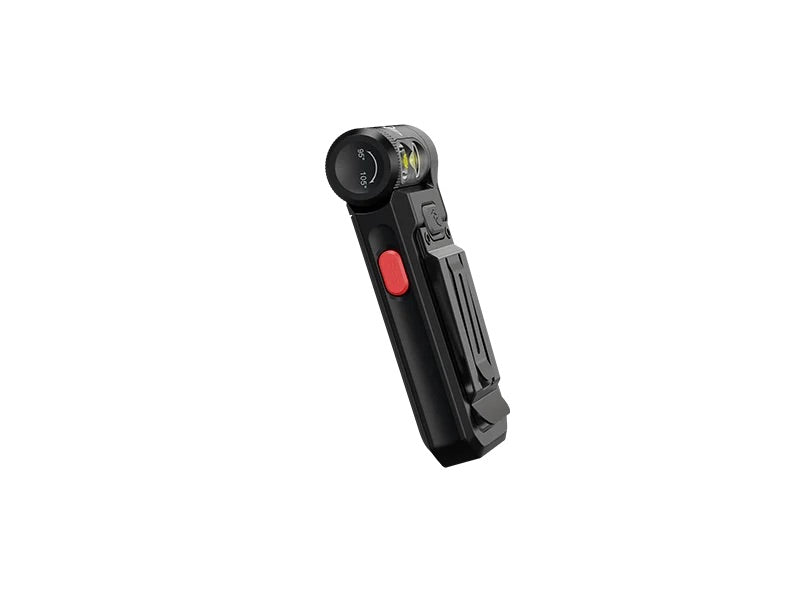 The Fenix SW05R-RED is a powerful yet tiny rechargeable flashlight that delivers a maximum output of 150 lumens and a maximum beam distance of 39 meters. Designed for outdoor adventurers, this light offers both white and red light sources to meet various lighting needs. The 200° adjustable light head angle allows for illumination from multiple directions. Individual switches control each light source for accurate and fast operation. Powered by a built-in 700mAh, it's fully rechargeable via the inner waterproof USB Type-C charging port. The light tail features a strong magnet for hands-free use on magnetic surfaces. Its included body clip provides secure attachment to your pocket, hat brim, or backpack strap. Ready to explore the outdoors, it boasts an IPX6 waterproof rating. With its reliable features, the SW05R-RED ensures dependable lighting for various outdoor adventures, whether you're trekking, mountaineering, or camping.