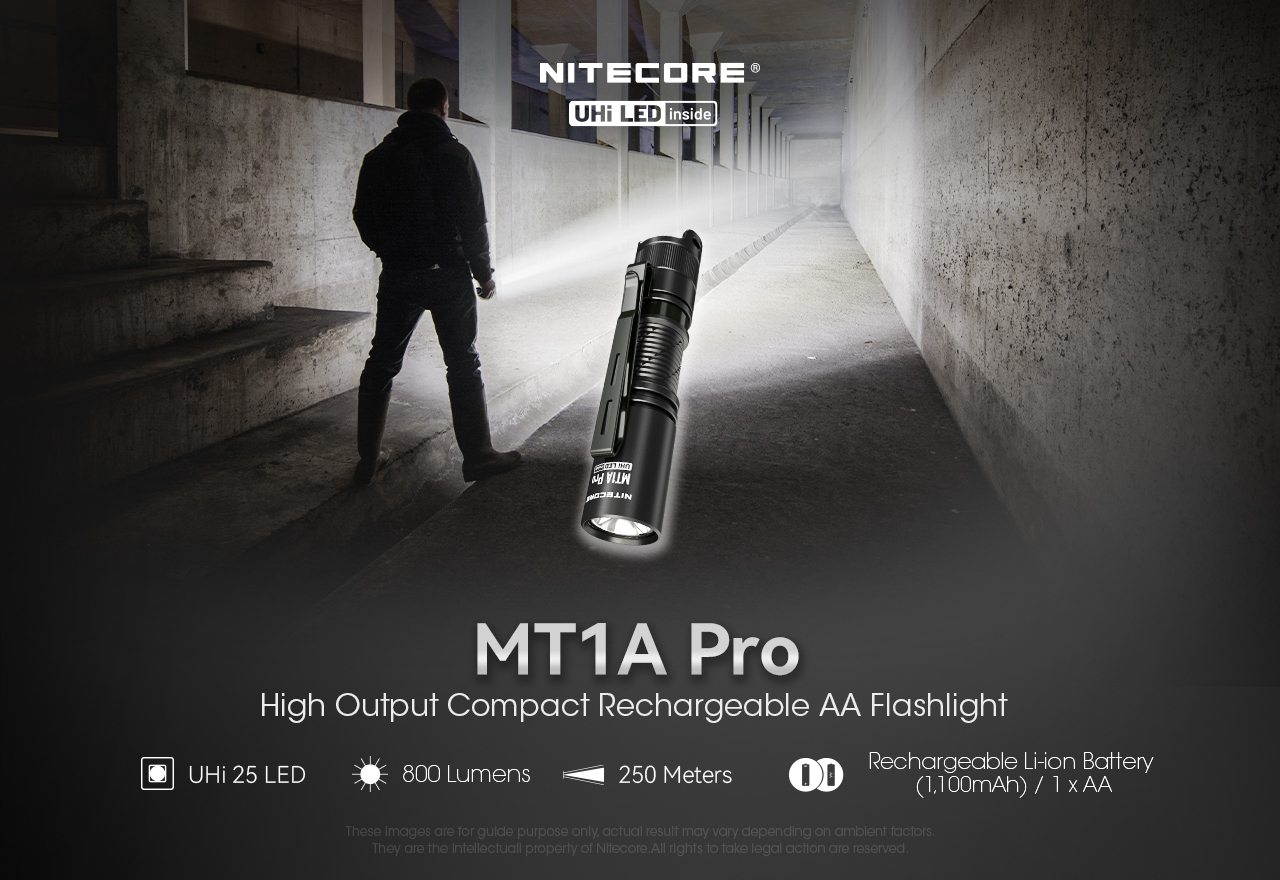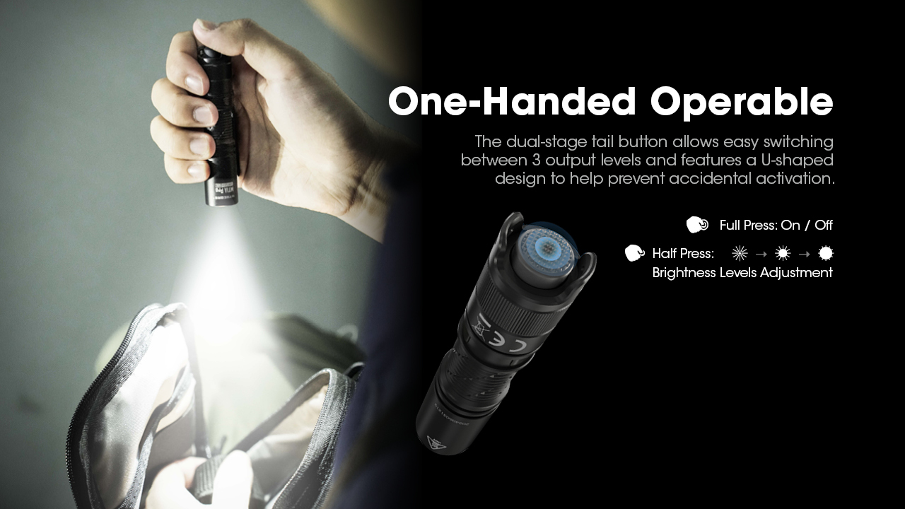 Powered by 1 x 14500 Li-ion battery while compatible with 1 AA battery