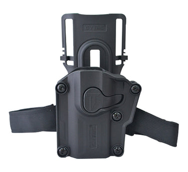 The Cytac Universal OWB Holster is constructed of an updated polymer. Holster is stronger, offering firm protection for your pistol in any situation. The new modern design is ergonomic, and its fully adjustable design fits a multitude of firearms. This holster has a quick-release/quick-locking button that allows for a quick draw and automatic locking when your gun is reholstered. They are designed for easy access and drawing your pistol without impediment, and can rotate 360-degrees to adjust the holster cant for ultimate versatility. These OWB hand gun holsters are very comfortable with their soft silicone paddle to securely fit holster to your belt. They provide a fast and easy draw while still proving great retention. This gun holster is worn outside the waistband, and fits several models of hand guns.